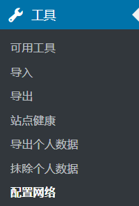 保存并返回wordpress后台,在工具中找到配置网络(只有添加上面那一段代码之后才能看到)